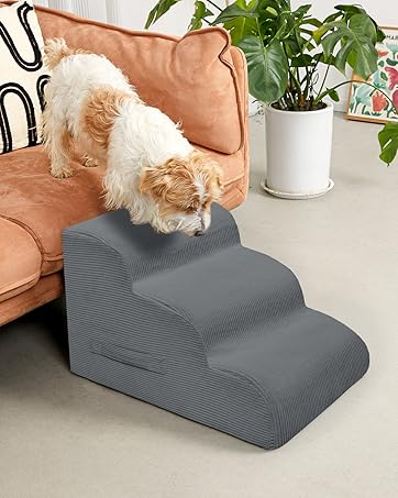 【Multiple Stairs Size to Choose】TWO-STEP: 15.7″L*16.5″W*11.8″H, THREE-STEP: 23.5″L*16″W*16″H, FOUR-STEP: 28″L*15″W*20″H. It’s a dog stair for most high beds, couch and sofa.