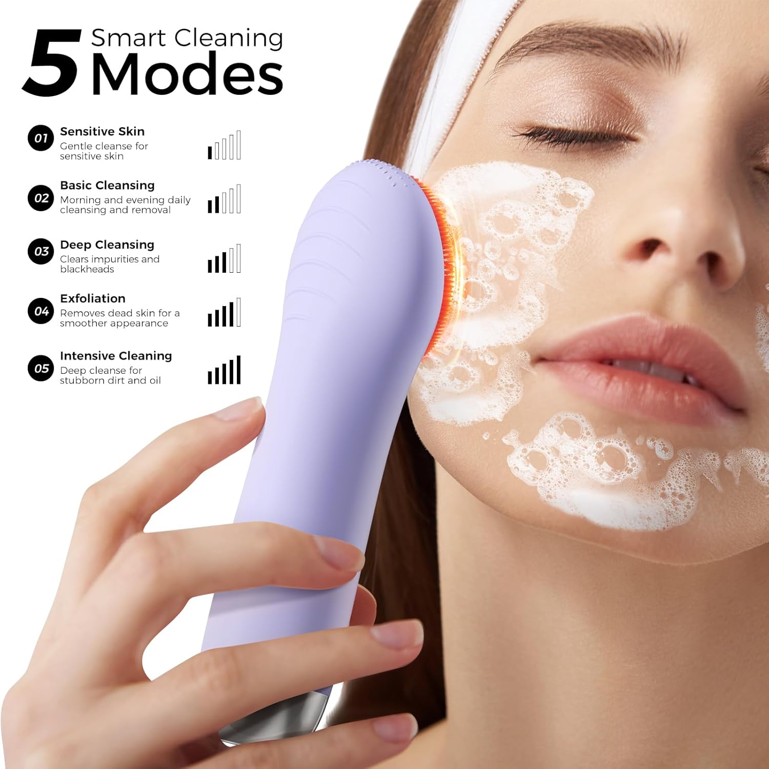 Ultra-Soft Silicone & Micro-Vibration Cleansing: Made with liquid silicone that’s 60% softer than traditional bristles, this face brush uses high-frequency micro-vibrations to gently lift away dirt, oil, and dead skin—without pulling or rotating. Experience a thorough clean with a softer touch