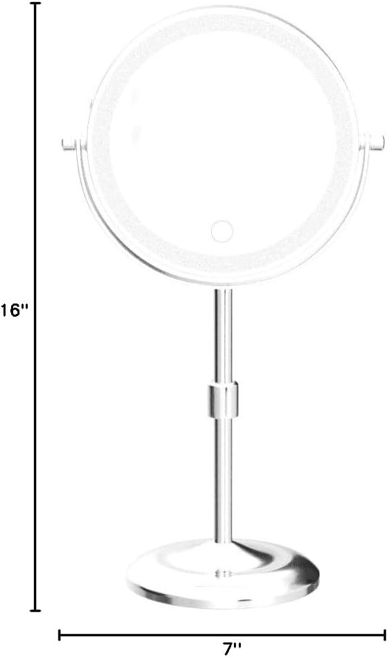 [UPGRADED 13” to 16” HEIGHT ADJUSTABLE & 360 ° ROTATION] The height of the desktop lighted mirror can be freely adjusted between 13 to 16 inches, and the makeup mirror with lighting can rotate 360 °, so you can always find the most suitable makeup angle on any plane. The magnified mirror with lights is suitable for tables and wash tables of all heights, allowing you to avoid the damage caused by bending over
