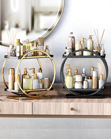 STURDY AND CLASSY: Made of premium metal (no plastic), the perfume holder organizer is durable and easy to clean, rust-proof and water-proof. Portable handle design, easy to carry and move. 2 tier counter shelf organizer can be placed in the kitchen, bathroom, bedroom or dressing room vanity top