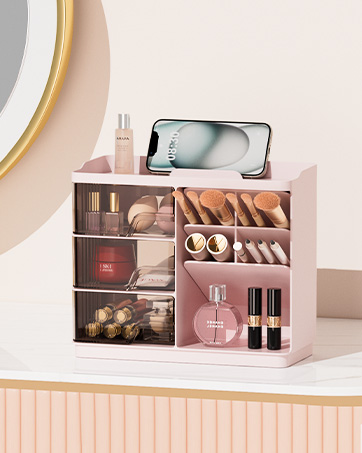 Stackable and Easy to Access: It’s stackable, an incredibly useful feature. When your collection of beauty products or other items grows, simply add more organizers on top. You can create a customized storage setup that’s perfect for your vanity, maximizing space and keeping everything in order.