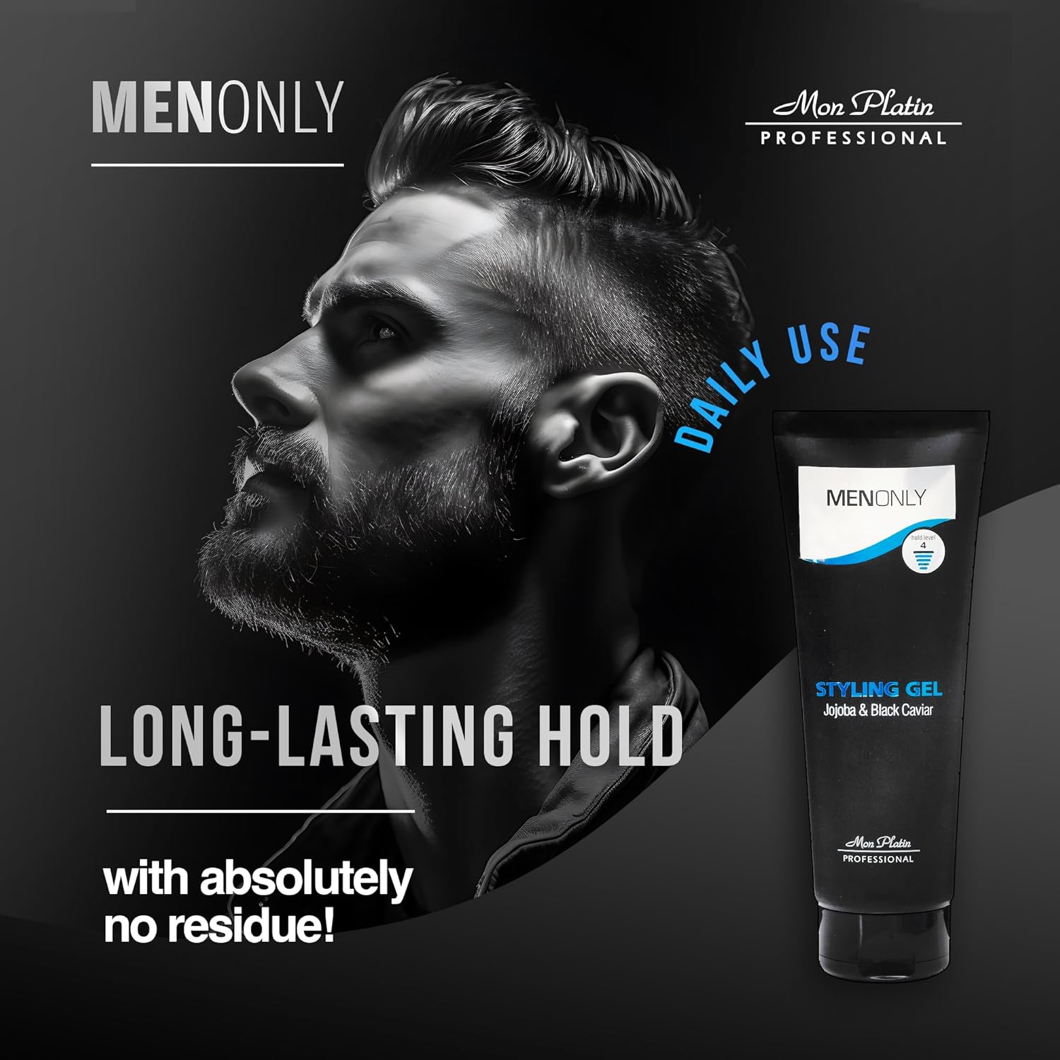Mon Platin Men’s Styling gel with Jojoba & Black caviar – Men’s Hair Gel with Black Caviar and Jojoba, Strong Hold, Anti-Dandruff Formula, Keeps Hair Styled, Healthy, and Shiny 250ml