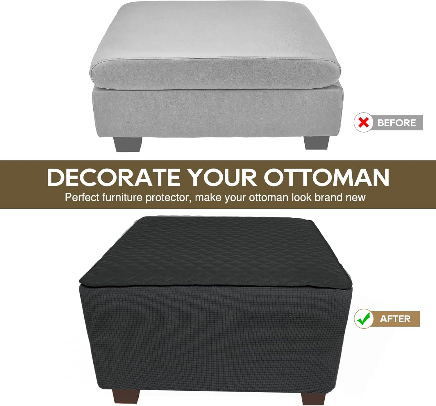 Water-Resistant & Elastic Design: Our ottoman cover boasts a unique blend of quilted water-resistant fabric and stretch material.Crafted with a top section of quilted water-resistant woven fabric,it offers excellent moisture protection. Meanwhile,the perimeter features elastic stretch fabric,ensuring flexibility and a snug fit for ottomans of various sizes. (Please note: While not 100% waterproof, simply wipe liquids promptly with a duster cloth or sponge.)