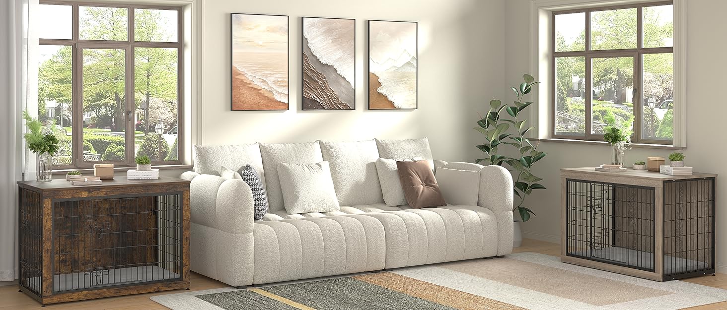 【Double Door Design】Piskyet dog crate furniture features two doors—a front door and a side door, making it easy for your dog to get in and out. The double door design can adapt to different spaces, and you can flexibly decide whether the side door opens to the left or right.