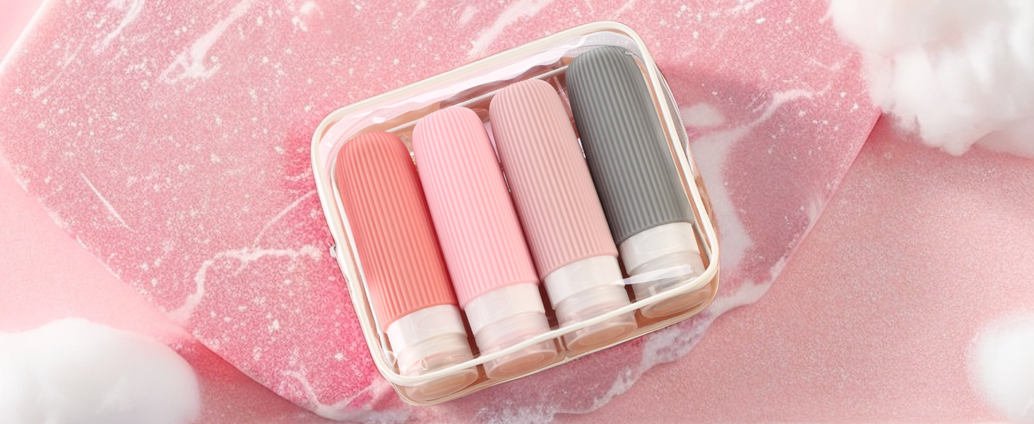 TSA carry on approval: 4 pack 3 oz silicone travel bottles, very suitable for shampoo, conditioner, shower gel, lotion, hand sanitizer and shower gel. It is equipped with a high-quality zipper transparent wash bag, which saves space and allows you to travel long distance freely like a professional.