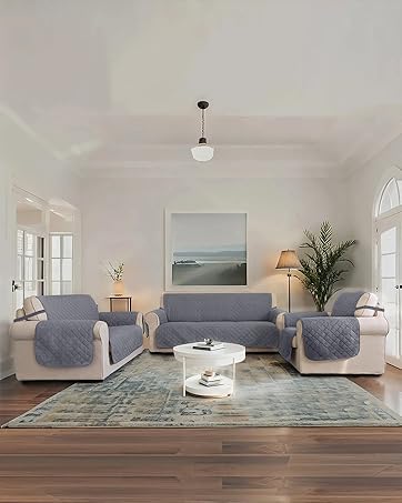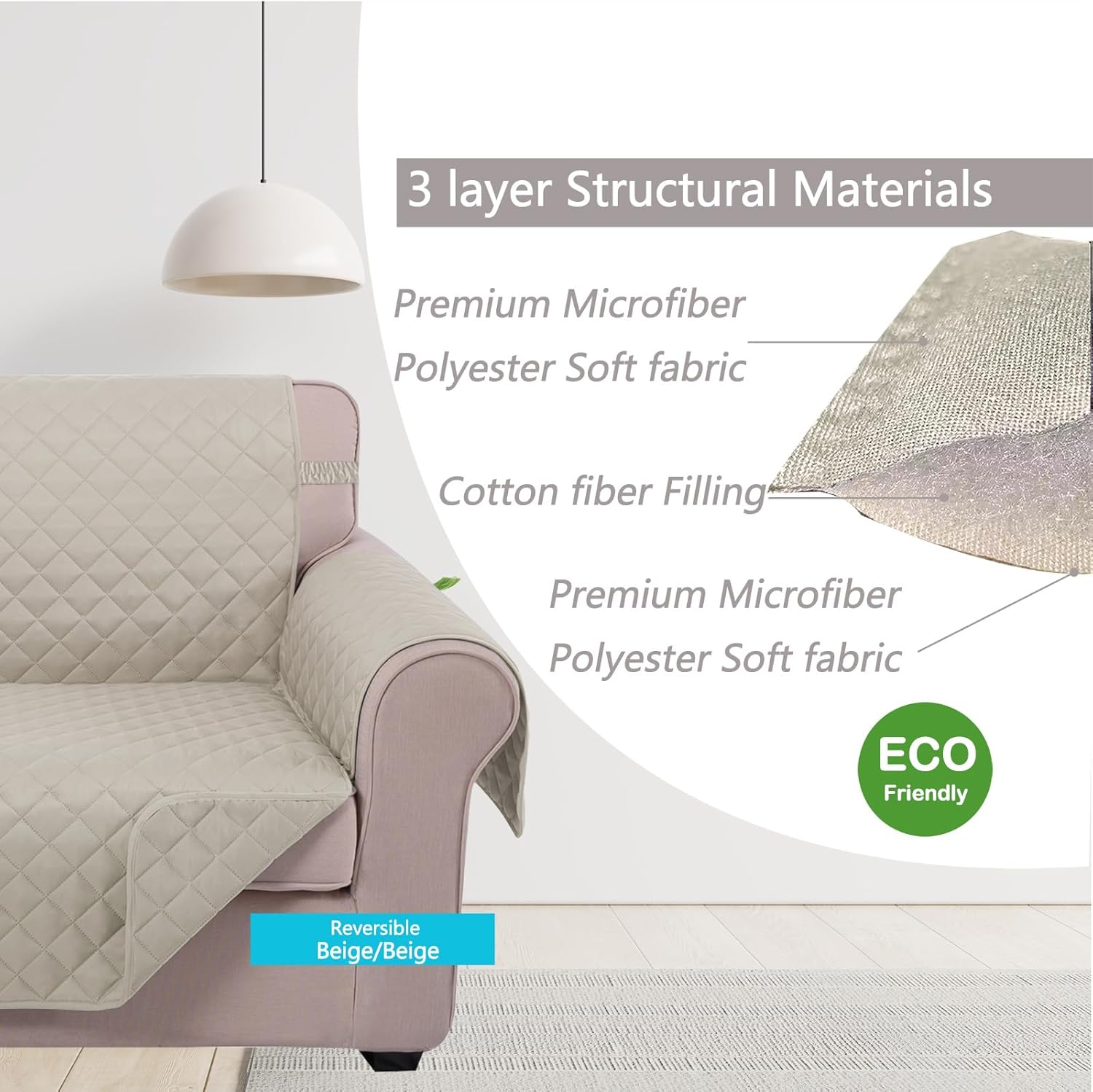 HIGH QUALITY: Loveseat couch covers is composed of 3 layers, Quilted texture, Water repellent, comfort, softness. Reversible two colors, double sides use.