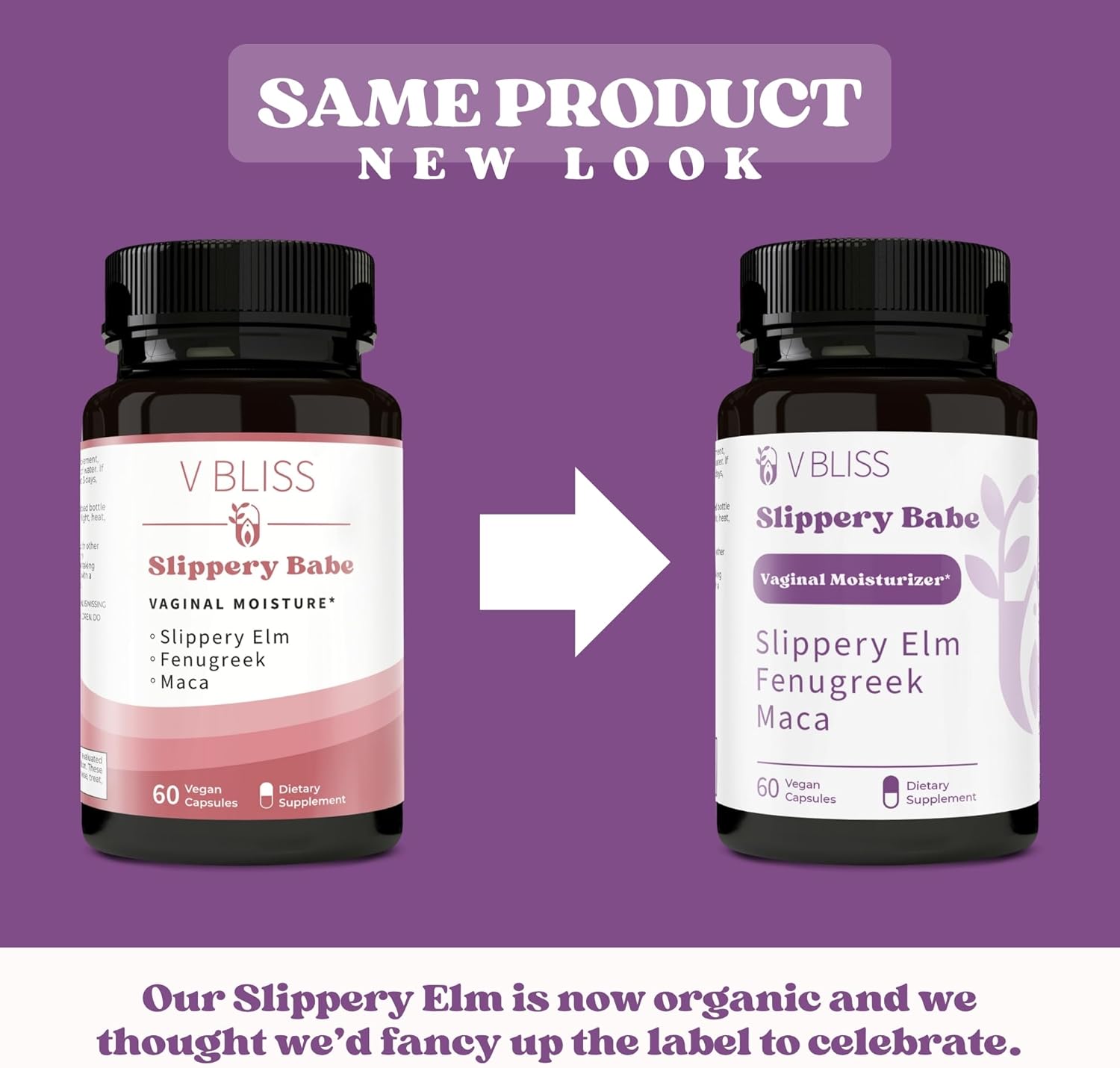 V Bliss Slippery Babe Vaginal Moisturizer Capsules | Relieves Vaginal Dryness with Organic Slippery Elm Bark, Fenugreek, & Maca | Vaginal Wetness | Once Daily (60ct)