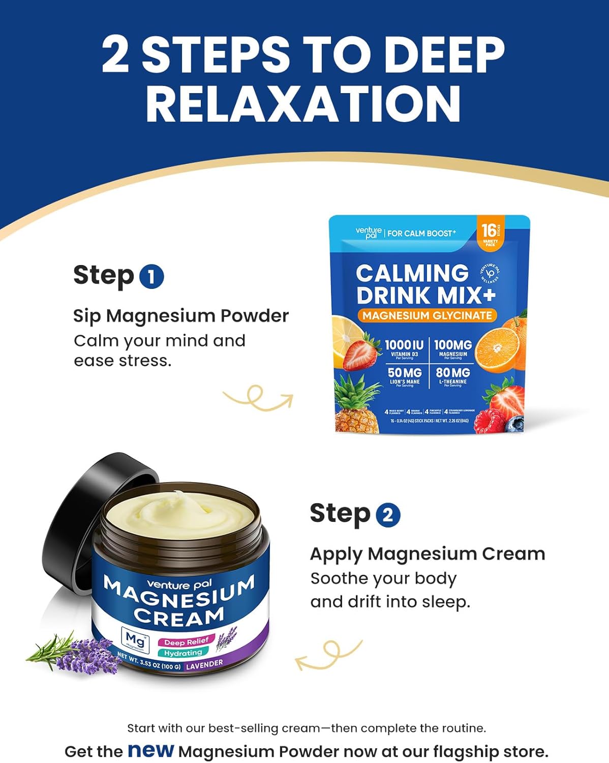 Venture Pal Magnesium Lotion, Topical Magnesium Cream for Sleep, Leg Cramps & Pain, Muscle Relaxation, Calm, Moisturizing Supplement with Coconut Oil, Shea Butter & Hyaluronic Acid, Safe for Kids