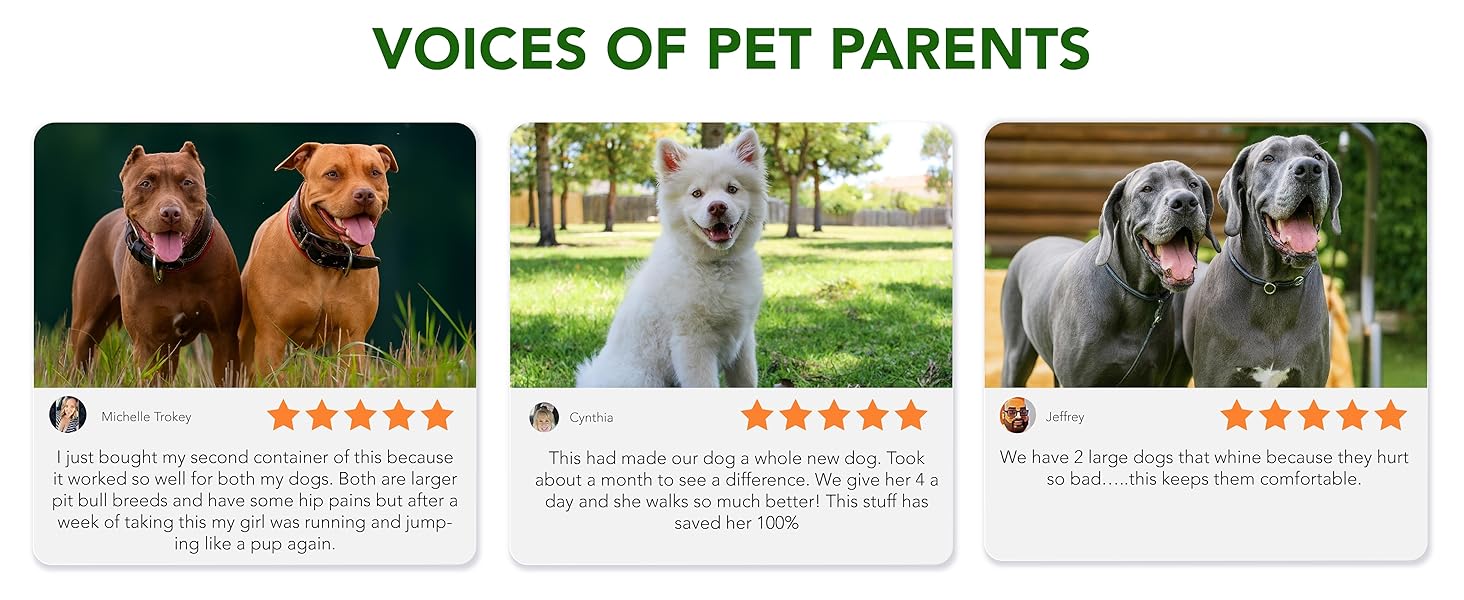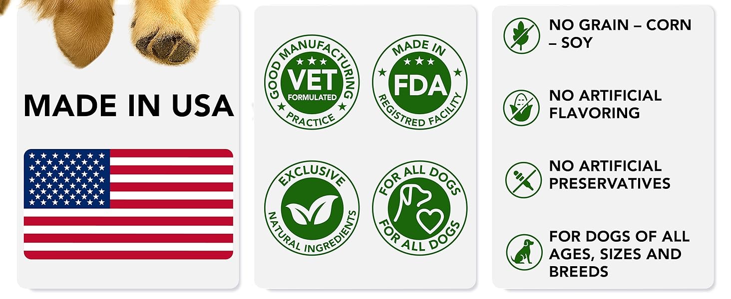 Premium Natural Ingredients Give Results: No Added Sugar, Wheat, Corn, Gmo or Preservatives. We are committed to using only best ingredients that deliver results in our dog glucosamine chews